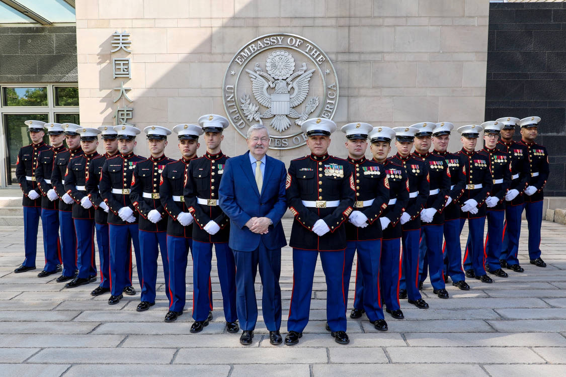 Ambassador Branstad with US Marines Embassy Beijing October 2020
